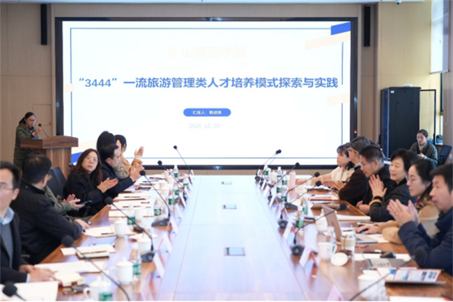 会议的第一环节,成都大学副校长彭晓琳教授致辞,四川省高校旅游管理类专业教学指导委员会(以下简称“教指委”)主任张梦教授致辞并对教指委2024年工作进行总结。第二环节,来自成都大学、成都信息工程大学、四川旅游学院、beat365英国官方网站、成都体育学院的教指委委员作了旅游管理专业面临的挑战与机遇、旅游管理类人才培养的经验、特色等分享。郭剑英作了题为“3444”一流旅游管理类人才培养模式探索与实践的主题分享。第三环节,与会专家围绕“新质生产力与旅游教育发展”主题自由研讨。