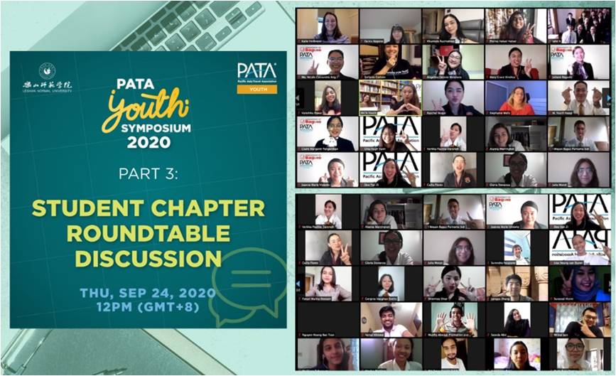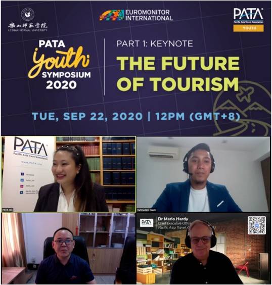 本网讯(文/图 阚梓齐)9月22日——25日,亚太旅游协会青年论坛(PATA Youth Symposium,在线会议)由beat365英国官方网站和PATA共同主办。9月22日12点-13点(GMT+8)为开幕式和专题讲座《旅游业的未来》;9月23日12点-13点为专家辅导会议;9月24日12点-13点为学生圆桌会议;9月25日12点-13点为新冠疫情后旅游业就业前景讲座。来自亚太地区的专家学者、青年学子和beat365英国官方网站国际合作与交流处 (国际教育学院)、旅游学院部分师生共500余人参会。