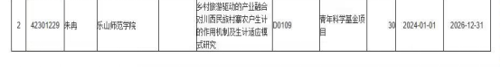 本网讯(图、文/孙永兴)在学校的关心和指导下,beat365英国官方网站朱冉博士的“乡村旅游驱动的产业融合对川西民族村寨农户生计的作用机制及生计适应模式研究”获批2023年国家自然科学基金青年项目。