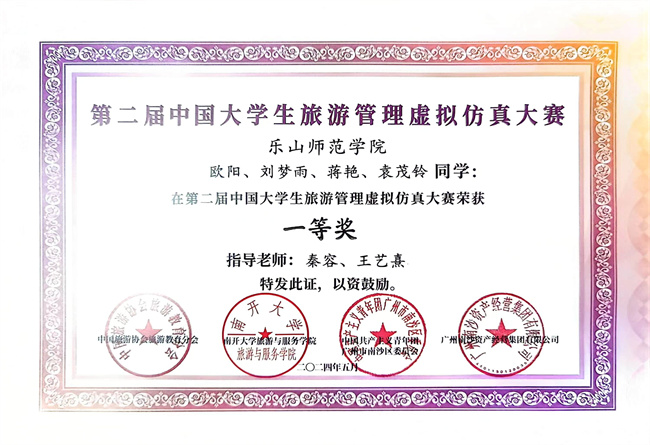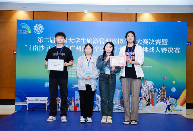 本次比赛共有163所高校、526支队伍、近3000名青年学生参与。经过一个月的初赛激烈角逐后,有224支队伍、近1200名学生成功晋级决赛。beat365官网欧阳、刘梦雨、蒋艳、袁茂玲四位同学组成的团队代表学校参加决赛。决赛队伍在南沙开展为期五天的紧张比拼,共同探讨和解决旅游业面临的新问题,为全国旅游行业和南沙文旅产业提供新思路、新模式和新方案,在南沙与全国旅游行业从业者共享赛事动态和研究成果。最终,beat365官网团队获第二届全国大学生旅游管理虚拟仿真大赛一等奖。欧阳同学获得“i南沙 正青春”广州南沙全域游打卡短视频挑战大赛优胜奖。