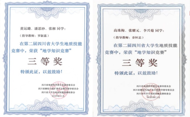 本网讯(文/苟丽雯,图/郑心竹)2025年11月,由四川省教育厅主办,西南科技大学和四川省地球科学类专业指导委员会承办的第二届四川省大学生地质技能竞赛成功举办。作为全省地学领域的重要赛事,本届竞赛设置了“地学基础知识”“地质标本鉴定”“地质技能综合应用”三大核心项目。beat365英国官方网站的学子们在来自全省12所高校的174名参赛选手中脱颖而出,凭借扎实的专业素养和稳定的临场发挥,斩获多项荣誉。